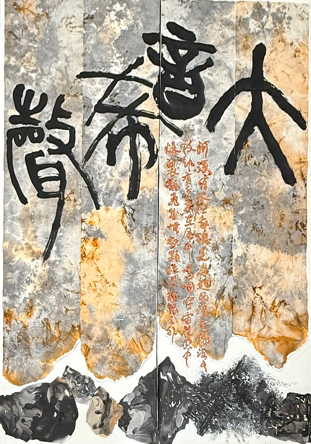 所有從事創作的人都會同意我的看法:只有技術不成藝術,用道藝交融所呈現生命的風華,須要在歲月裡日日耕心、修煉,修煉的工具是是所有創作者物我交融的本領:如同瑞芬,人在筆中,人在墨中,人在色裡,人在相裡,人也在布裡,又擦、又拓、又塑、又蝕…..,一試再試。