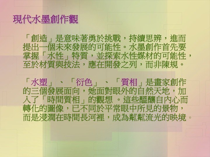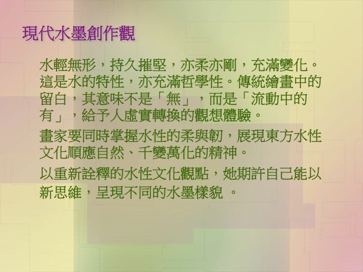 其次,三條幅所書寫之文字,是詮釋個人繪畫系列的創作內涵。