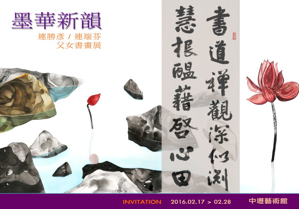 活動展覽 墨華新韻-連勝彥、連瑞芬父女書畫展 列印 展覽日期:2016.2.17~2.28 地點:中壢藝術館 第一展覽室 (桃園市中壢區中美路16號) 開幕式:2.20(六) AM10:30 D001 2016墨華新韻父女展 D001 2016墨華新韻父女展 D002 2016父女展邀卡 D002 2016父女展邀卡 D003 2016父女展邀卡 D003 2016父女展邀卡 View the embedded image gallery online at: https://juifen.rumotan.com/index.php/news/activities-exhibition/178-mohua-new-rhyme-straight-yan-even-remifentanil-daughter-painting-and-calligraphy-exhibition?layout=default&print=1&tmpl=component#sigProIdbe30937269