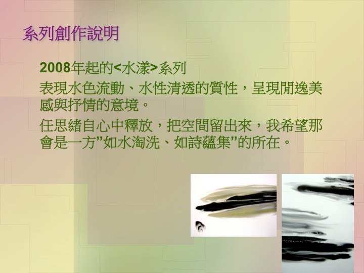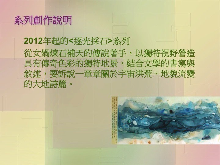 其次,三條幅所書寫之文字,是詮釋個人繪畫系列的創作內涵。