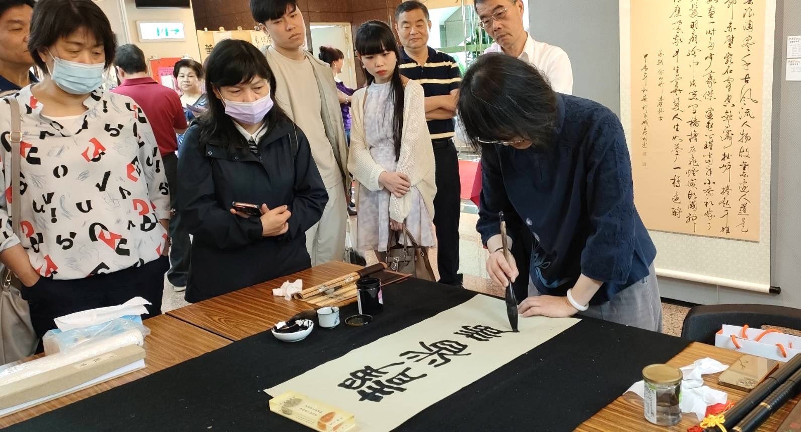 為慶賀先嗇宮建廟270週年,特別呈現寺廟楹聯主題創作,並邀請傑閣先生連勝彥、傑閣書會成員曾上祐、徐靜國、蕭潤生及我個別書寫一件楹聯中堂,國畫班指導陳老師劉老師共同創作繪畫作品,致贈廟方誌念,也別富意義!