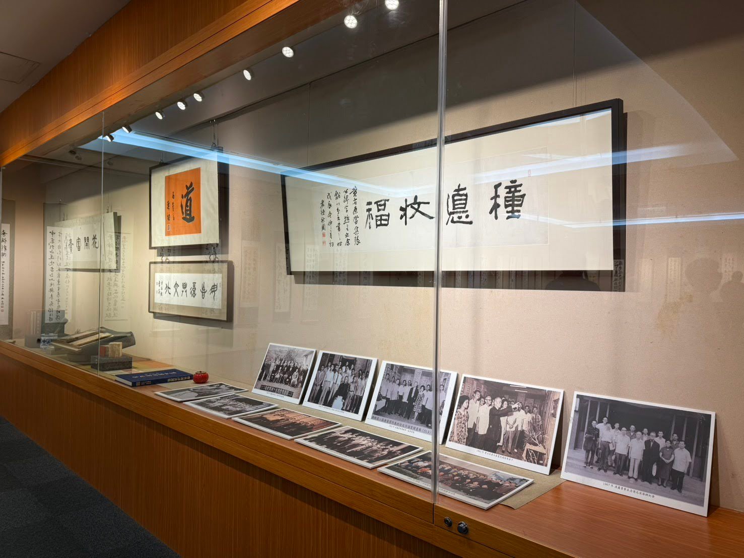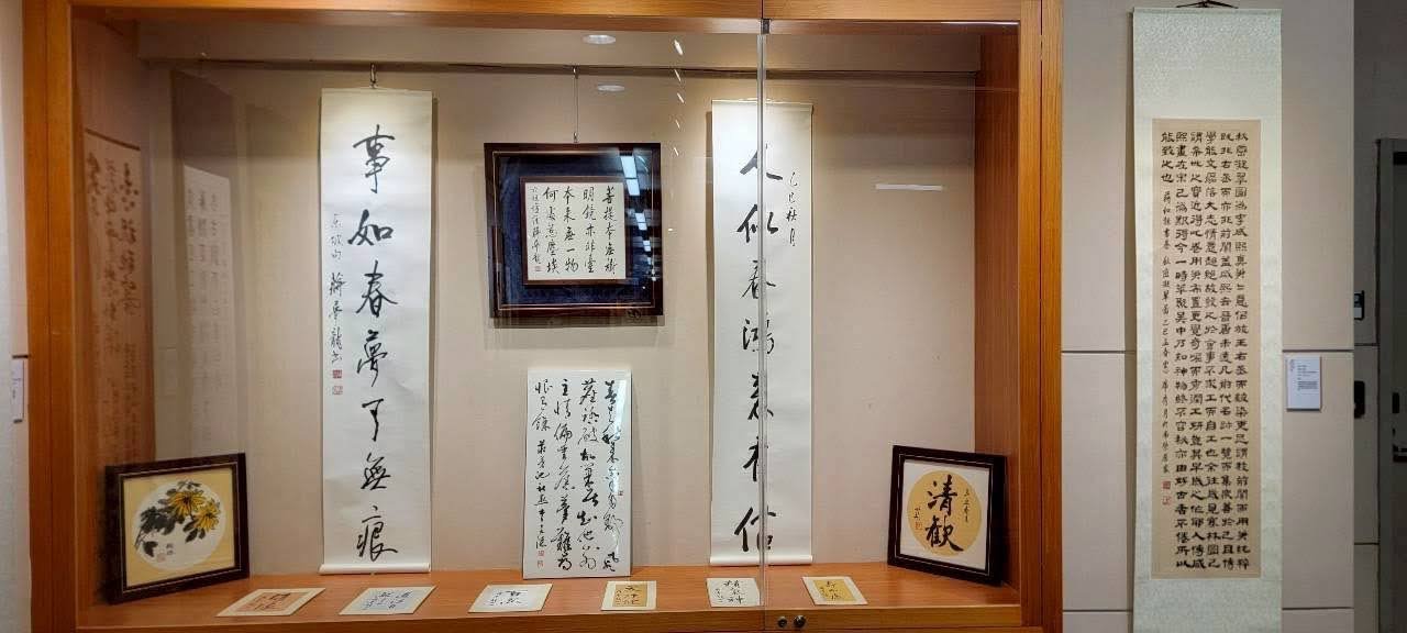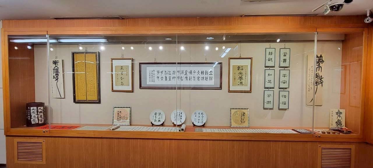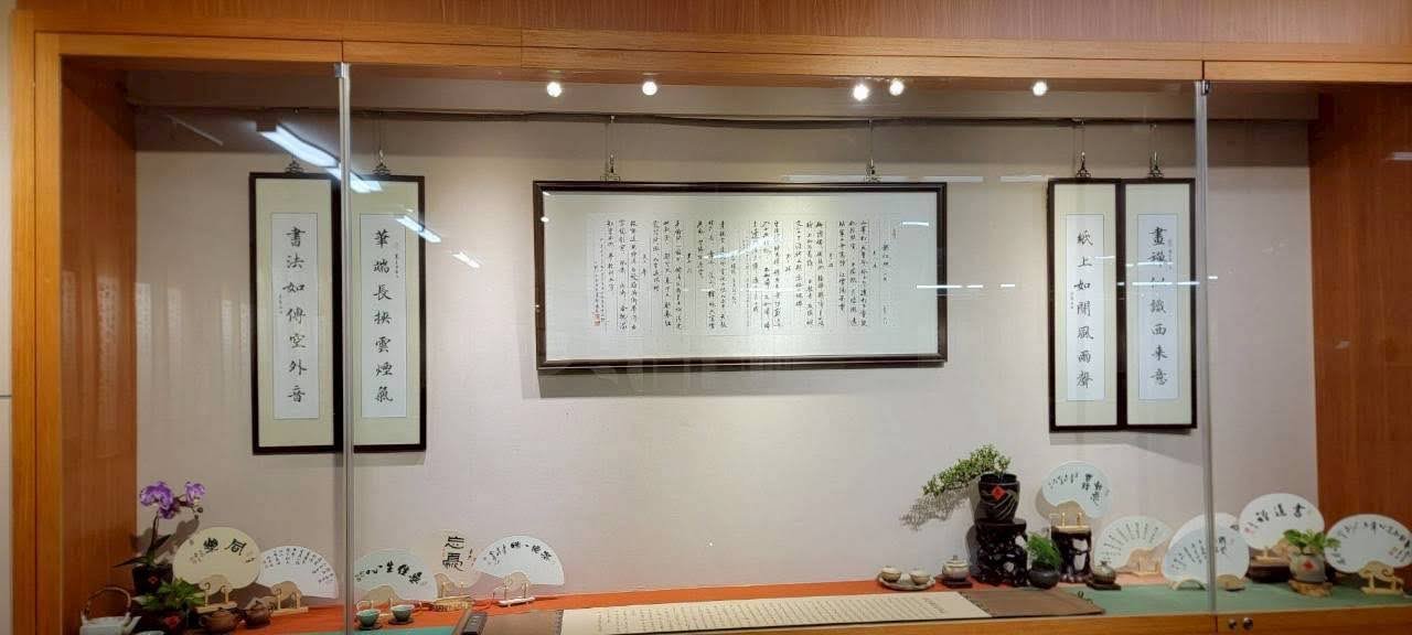 雙和展場櫥窗有雲龍、餘三、海東、傑閣、如一、臺灣書藝等子會精心創作的典雅小品,文教基金會也首度展出曹公手跡筆記、文史圖照一窺書教軌跡;
