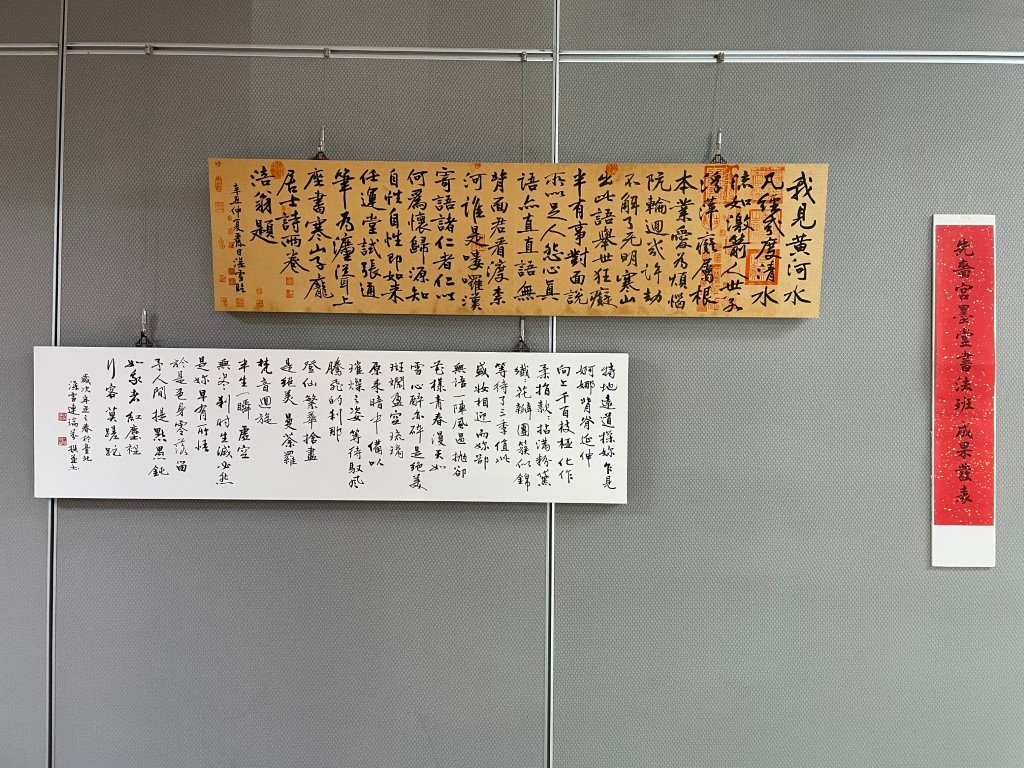 相較去年,作品的質與量都提升許多,類型、款式也以多元裱褙增加變化性。特邀的書法大家—傑閣先生提供多件觀摩書作,及連老師研臨/創作的階段性作品,包括多種行書名帖及古典與現代詩詞,都讓佈展的難度相對增加。學員各自的成果及群體共同合作的小品聯句組合,都是展場的亮點!