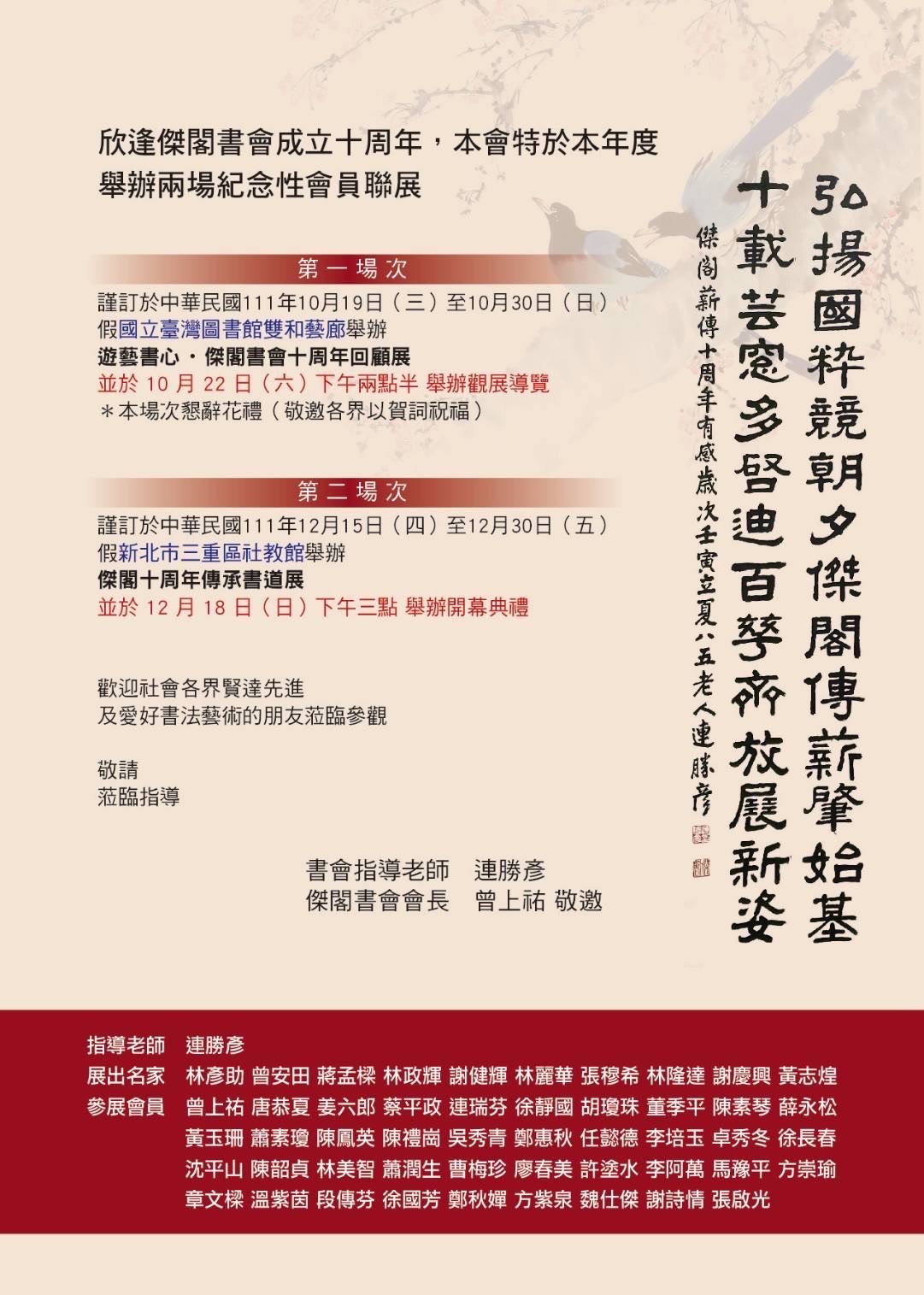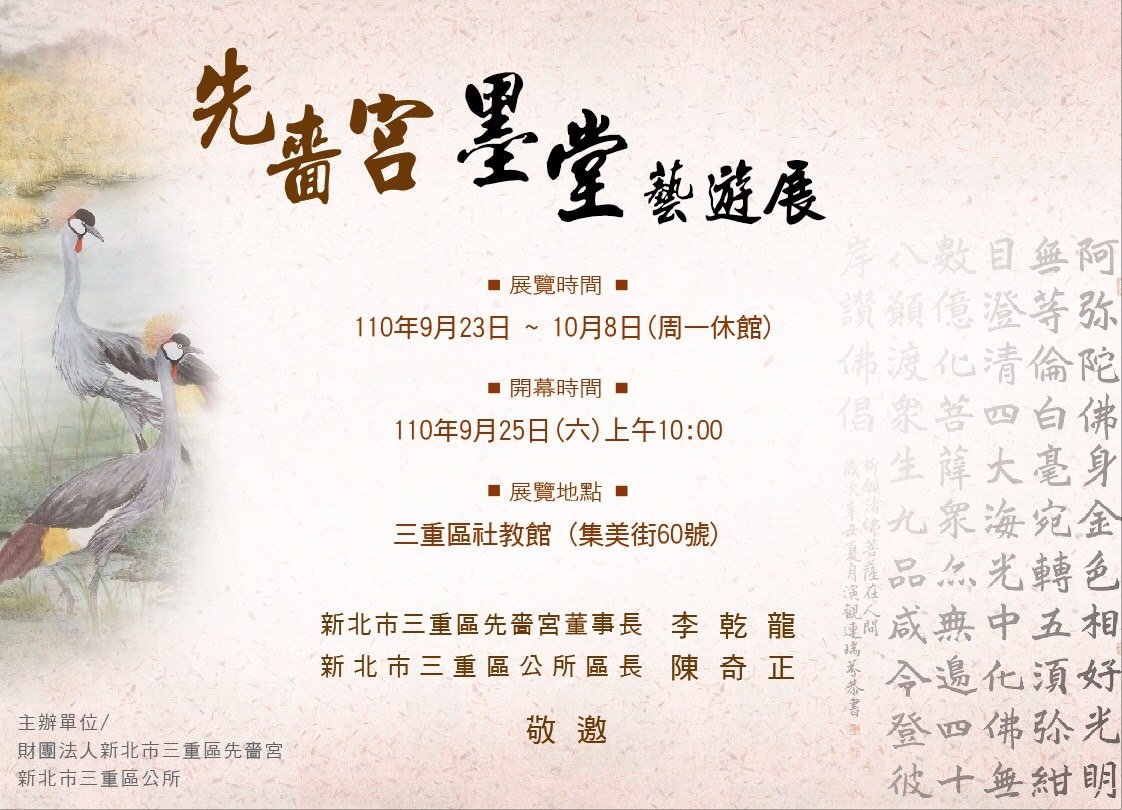 書畫創作者連瑞芬老師所指導的先嗇宮書法班,結合國畫班師生假三重玫瑰社教館共同舉辦本年度師生展。
