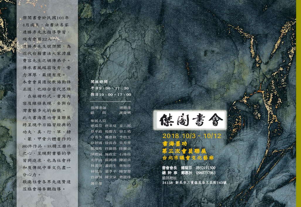 地 點: 台北市議會文化藝廊 台北市信義區仁愛路四段507號