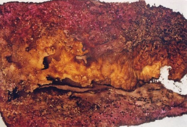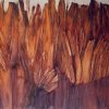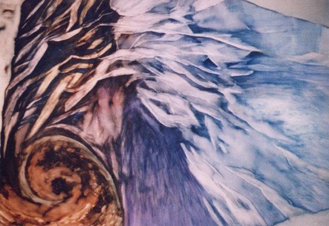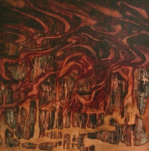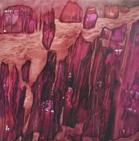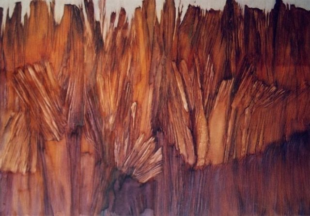 畫家創作靈感大部份是來自於自然地理的觀察,加上對於地質石岩的形成與時間形象的變換極感興趣,所以構思了許多系列創作。她的畫既不是一地風景,也不描摩寫實,而是融入了時間概念的視覺圖像。