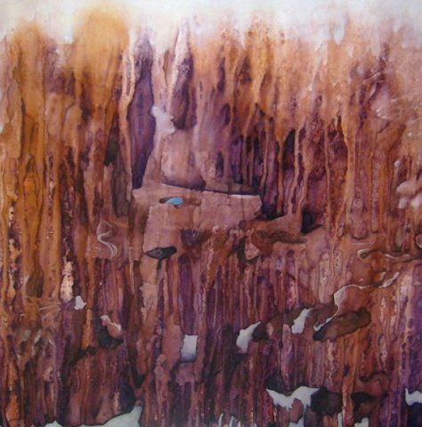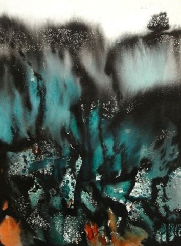 畫家創作靈感大部份是來自於自然地理的觀察,加上對於地質石岩的形成與時間形象的變換極感興趣,所以構思了許多系列創作。她的畫既不是一地風景,也不描摩寫實,而是融入了時間概念的視覺圖像。